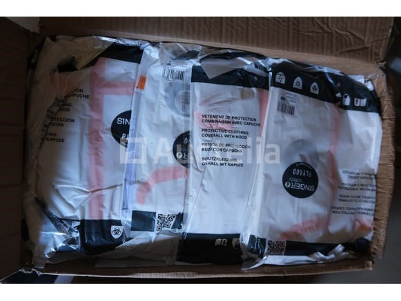 Compositie: +- 80 beschermende pakken +- 1500 half-shell maskers +- 7 bril In hun originele verpakking