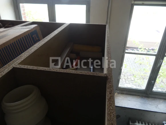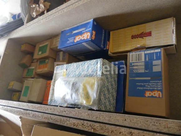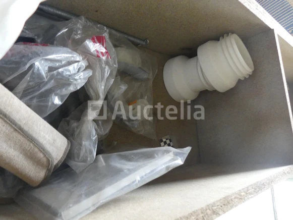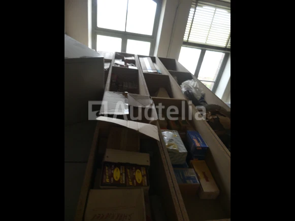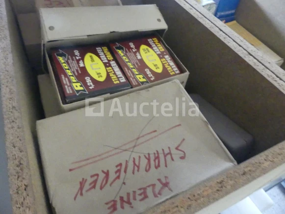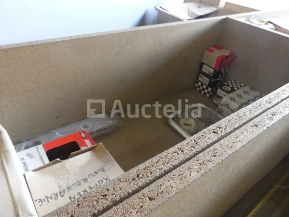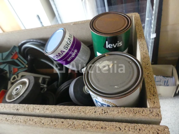 Lampen, hardware, ... Lampen, hardware, zwenkwielen, ... De inhoud van 3 houten bakken van 250 cm x 34 cm x 25 cm