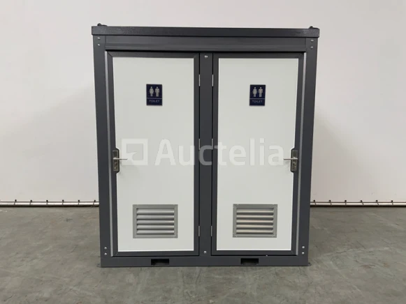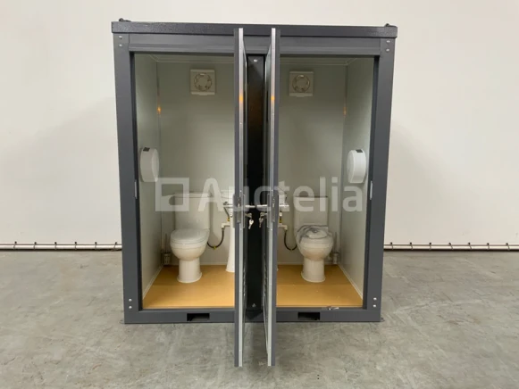 2 toiletten; 2 wastafels; ventilatie rooster; ventilatie unit; licht; toiletrolhouder houder; afsluitbaar; 220v; afvoer; heftruck sleuven; kraanhaken; afmeting 2050x1280x2300mm