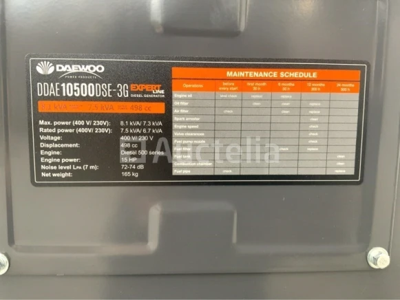 Max power: 8.1 kVA (400 V) 7.3 kVA (230 V) Rated power: 7.5 kVA (400 V) 6.7 kVA (230 V) Engine Power: 15hp Displacement: 498 cc Fuel tank capacity: 15 L Oil tank capacity: 1.65 L Run time 50% load: 12 hrs Power factor: 1.25 Socket: 1 x 16 A - 1 x 32 A Output 12V: ✓ Battery: 36 AH Noise level at 7M: 72 - 74 dBA Net weight: 165 kg Dimensions: 880 x 560 x 720