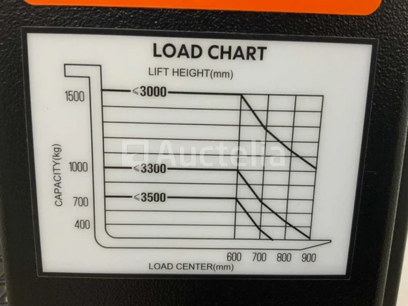 Fork size; 560x1150mm; loadcenter 600mm; power 0.75KW; battery voltage 24V; battery 71Ah-5hr; 230V; interne lader; lifted masthoogte 3435mm; turning radius 1490mm; noodstop; batterij percentage; dubbele ketting; noodknop;