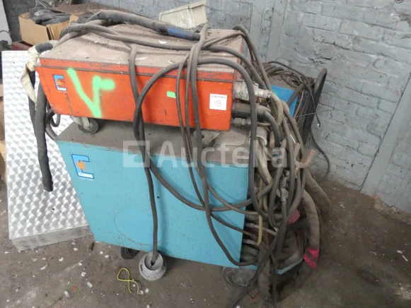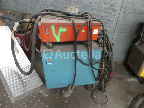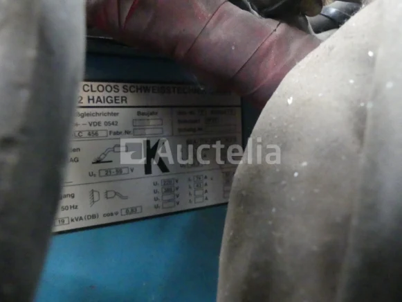 De machine van het wagenlassen Merk: Cloos Model: GLC456 Spanning: 400V driefasig Lengte: 115 cm Breedte: 55 cm Hoogte: 110 cm Staat: Niet getest Geleverd met zaklamp en grond