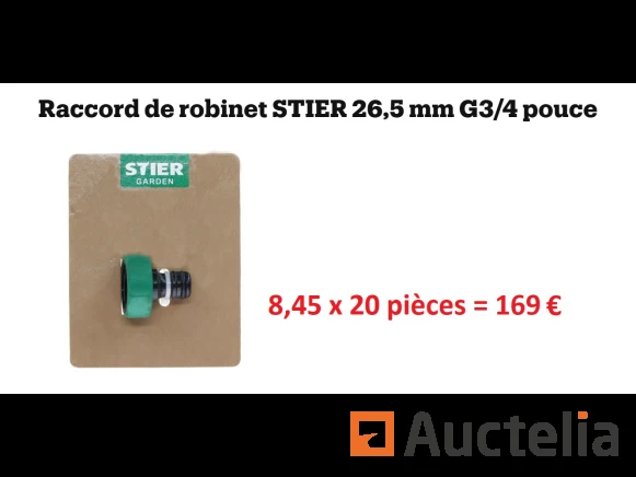 Tik op verbinding Merk: STIER Model: 26,5 mm G3/4 inch Hoeveelheid: 20 stuks Conditie: Nieuw Verzending: Tarief A