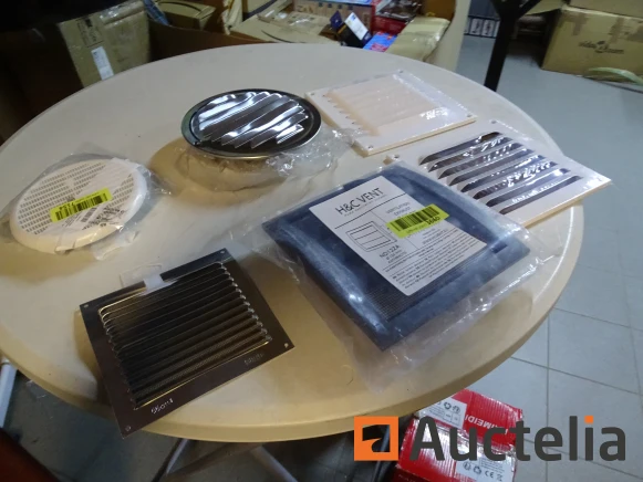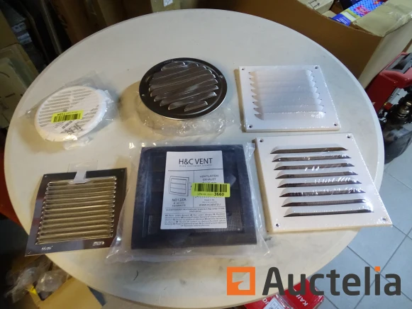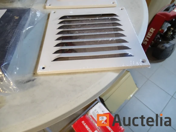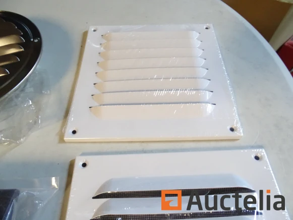 Ventilatierooster Aantal: 6 stuks Detail: . 3 vierkante roosters van 20 x 20 cm . 1 vierkant raster van 15 x 15 cm . 1 rond rooster van 19 cm doorsnede . 1 rond rooster van 14,5 cm doorsnee Conditie: Nieuw Verzending: Tarief A