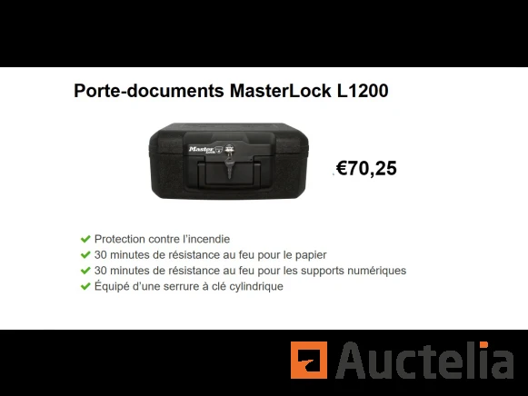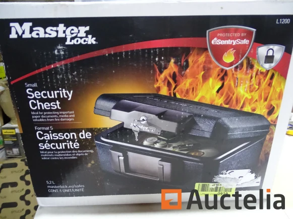 Kleine kluis Merk: MASTER LOCK Model: L1200 Afmeting: 15,5 x 36,2 x 28,4 cm Conditie: Nieuw Verzending: Tarief A
