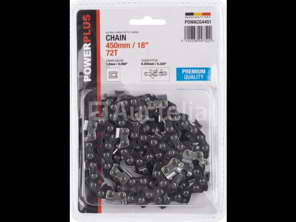 Kettingzaagketting - Bladlengte 450 mm, 72 tanden Merk: Powerplus POWACG4451 Conditie: Nieuw Verzending: Tarief A