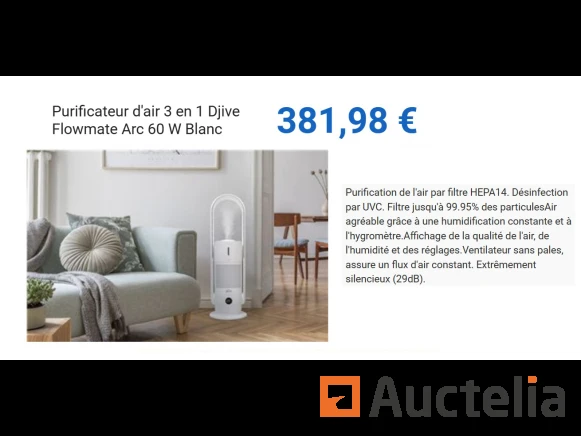3-in-1 luchtreiniger Merk: DJIVE Model: Flowmate Vermogen: 60 W Kleur: Wit Waarde van de winkel: 283 € Conditie: Nieuw Verzending: Tarief D