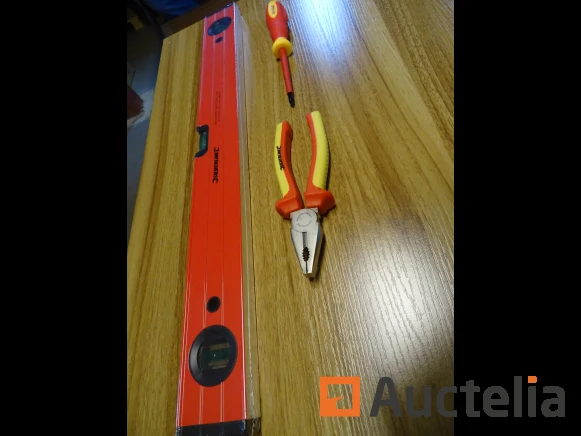 Professioneel versterkt aluminium waterpas Merk: SILVERLINE Model: Expert Lengte: 60 cm Conditie: Nieuw Geïsoleerde universele elektricienklem Weerstand: 1000 V Conditie: Nieuw Schroevendraaier voor elektriciens Merk: SILVERLINE Model: PZ2 Weerstand: 1000 V Conditie: Nieuw Verzending: Tarief A