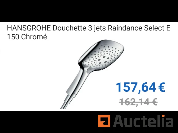 Handdouche 3 stralen Merk: HANSGROHE Model: Raindance Select E 150 Conditie: Nieuw Let op: een paar onbeduidende krassen Verzending: Tarief A