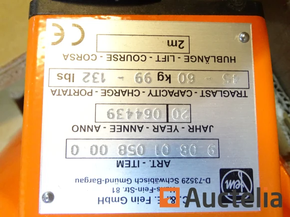 Balancer tot 60 kg belasting Merk: FEIN Waarde van de winkel: 1.509 € Conditie: Nieuw Verzending: Tarief C