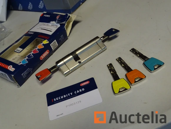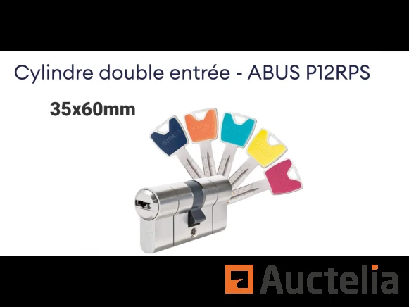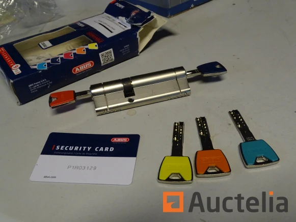 Duoface veiligheidscilinder Merk: ABUS Model: P12RPS Veiligheidsklasse: 9 Afmeting: 35 x 60 mm Geleverd met 5 gecodeerde sleutels en eigendomskaart Conditie: Nieuw Verzending: Tarief A