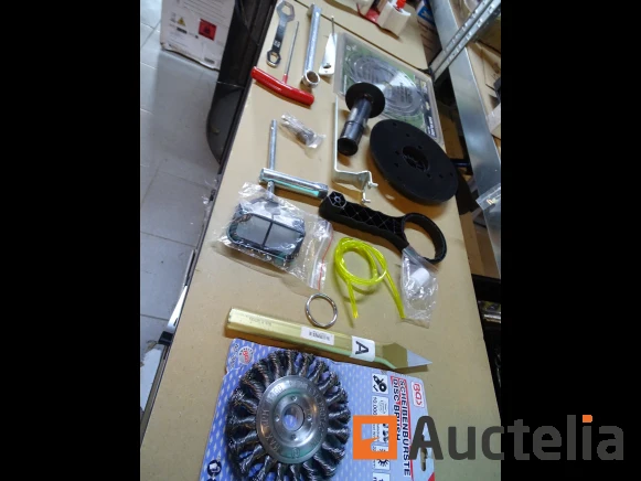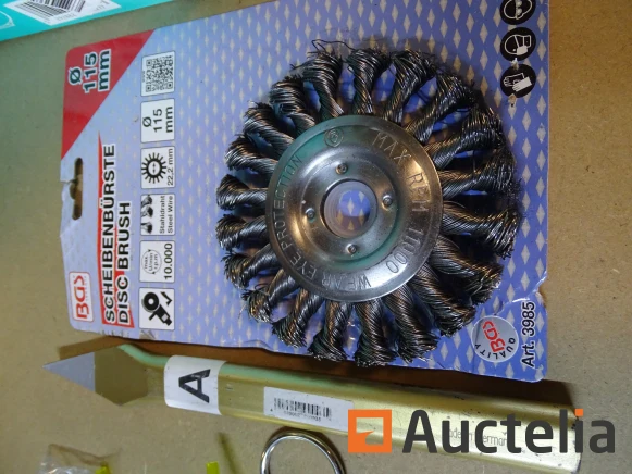 Diverse hulpmiddelen Detail: . 1 BGS ijzeren borstel diameter 115 mm . 1 steeksleutel met meerdere vergrendelingen (8 tot 13 mm, 14 tot 22 mm) . 1 x INBUSSLEUTEL diameter 5 mm . 1 stiftsleutel 18/19 . 1 Blad met een diameter van 200 mm . 1 Bougiesleutel . Divers Conditie: Nieuw Verzending: Tarief A