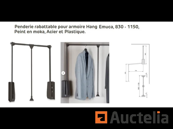 Neerklapbare kledingkast voor kledingkast Merk: EMUCA Verstelbare breedte 830-1150 mm Conditie: Nieuw Let op: Kleding niet inbegrepen Verzending: Tarief D
