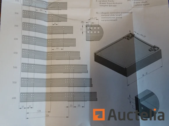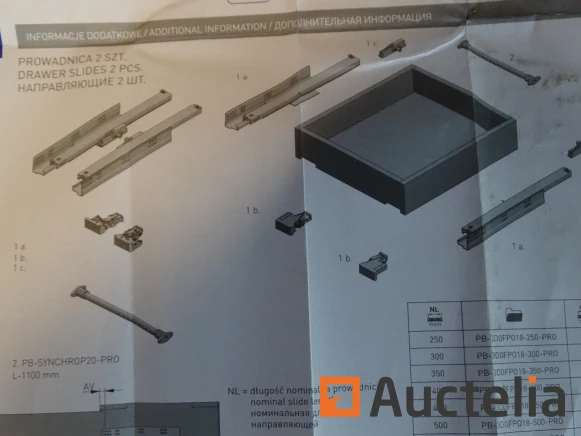 4 paar ladegeleiders met rem, +/- 55 cm lang