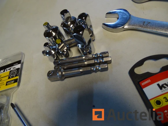 4-in-1 omkeerbare ratelsleutel 10x13 - 17x19 mm Winkelwaarde: € 30,78 Titan 11318 1/4" moersleutel Winkelwaarde: € 20,79 Diversen (Zie foto's) Staat van de items in de partij: Nieuw Verzending: Tarief A