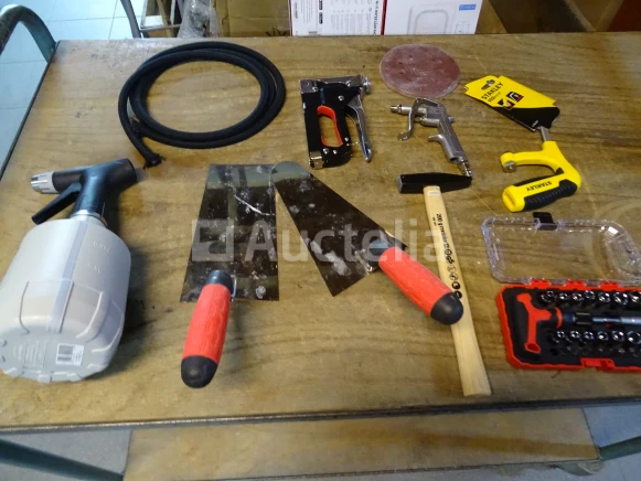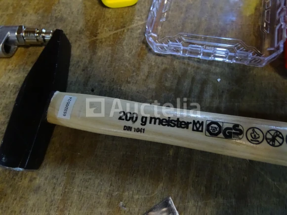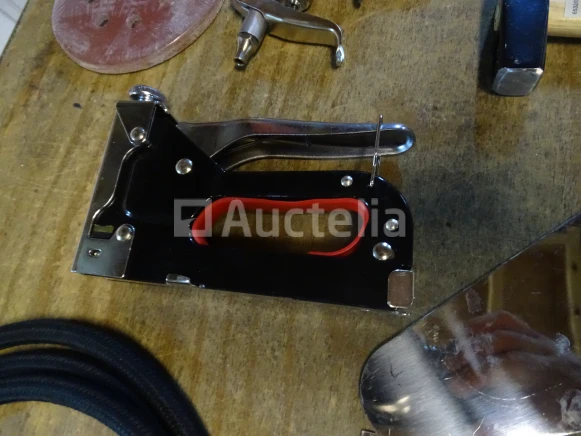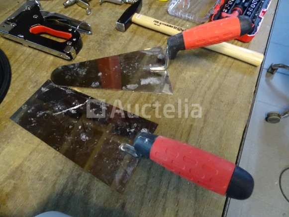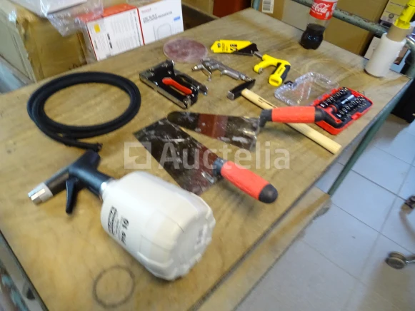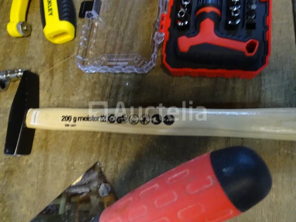Gereedschapsitem (zie foto's) Aantal: 10 stuks Detail: . De hamer van MEISTER . STANLEY zaag . 2 Troffels . Nietmachine . Blower . Kleine handmatige racagnac . Divers Staat van het perceel: Nieuw Verzending: Tarief B