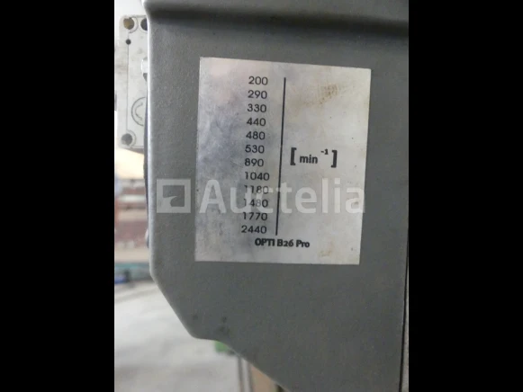 Boor Merk: Optimum Model: B26 PRO Spanning: 230V Mono Lengte: 65 cm Breedte: 70 cm Hoogte: 165 cm Vermogen: 750 watt Status: Functioneel op Inventarisatiedag Inbegrepen: Morse taper 3