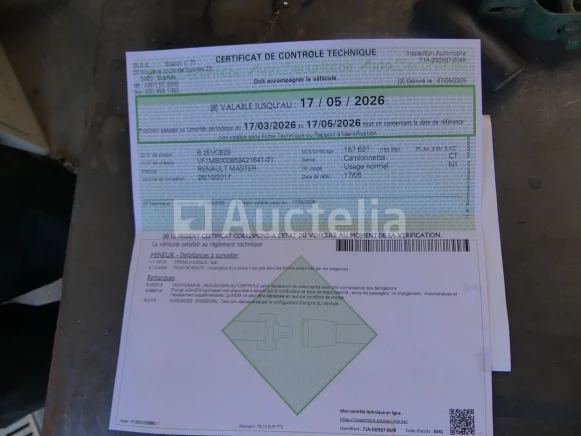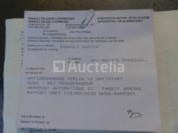 Drieweg pick-up vrachtwagen Merk : Renault Model: Meester Jaar: 2017 Kilometerstand : 159080 Lengte: 640 cm Breedte: 210 cm Hoogte: 240 cm Vermogen: 120 kW Datum van 1e inschrijving: 26-10-17 Brandstof: Diesel Verplaatsing (cc) : 2299 Versnellingsbak: Handgeschakeld MMA: 3500 kg Ledig gewicht: 2855 kg Ophanging: Mechanisch Airconditioning: Handmatig Radio: Ja Achteruitrijcamera: Ja Aantal toetsen: 2 Aantal zitplaatsen: 3 Certificaat van overeenstemming: Ja Certificaat technische keuring: Ja Technisch keuringscertificaat geldig tot: : 17-05-26 Bewijs van inschrijving deel 1: Ja Bewijs van inschrijving deel 2: Ja Identificatierapport: Ja Voertuig dat nog in dienst is (kilometerstand evolueert): Ja Chassisnummer: VF1MB000859421641 Euro Standaard: 6 Status: Functioneel op Inventarisatiedag Niet inbegrepen: Inhoud Opmerkingen: Zware chassis pick-up truck