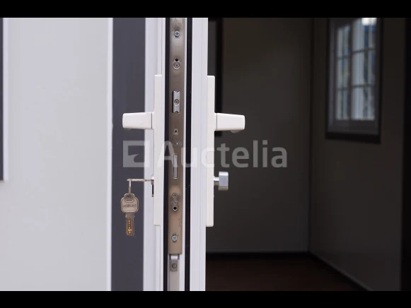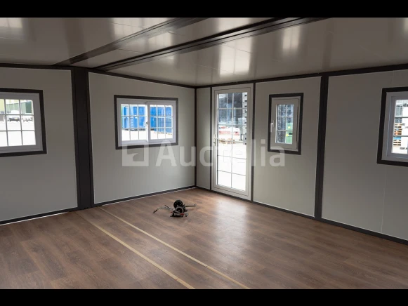 Ca. 28m2 - 69m3; uitklapbaar; afsluitbare deur; 7 schuiframen; 1 kiep raam; stelbare poten; heftruck lepelsleuven; hijs oog; 2 handlieren voor de vloer te laten zakken; opstapje; vinyl vloer; ingeklapte transport afmeting 5890x720x2550mm; vloeroppervalkte 4800x5850mm; zonder sanitair; 6141