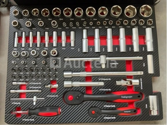 Aluminium: ja; met inhoud: ja; omschrijving: 238 delig; w.o. steek- ringsleutel met ratel; diverse tangen; doppenset met ratel; diverse schroevendraaiers; precisieschroevendraaiers; inbussleutel; diverse bits; klauwhamer; schaar; rolmaat; waterpas; tapijtmes;
