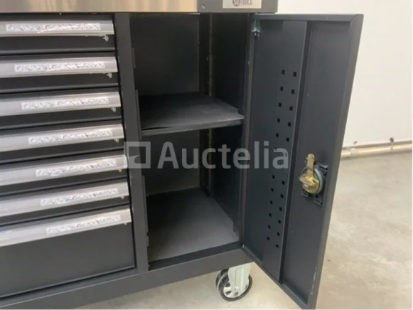Aantal lades: 7 Aantal gevuld: 6 steeksleutel, ratelsleutel, doppenset, schroevendraaiers, tangen, imbus. 274 delig Afmeting 1130x460x990mm zwenkwielen Afsluitbaar