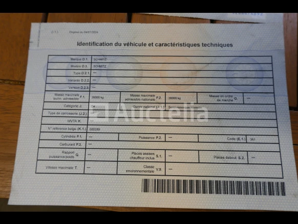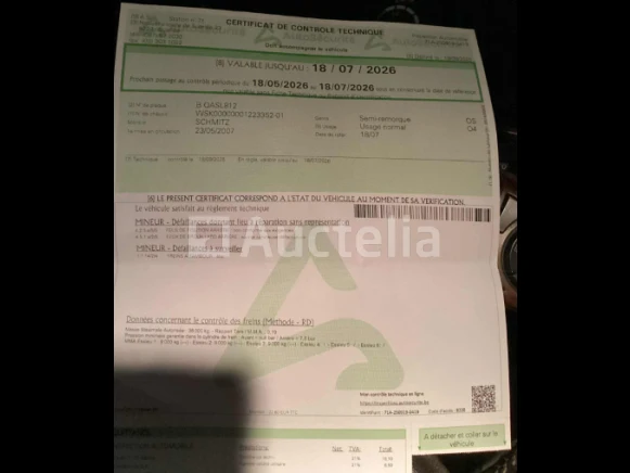 Oplegger met dekzeil Merk: Schmitz Model: SKI 24 Jaar: 2007 Datum van 1e inschrijving: 23-05-07 Chassisnummer: WSK00000001223352 Technische keuring geldig tot: 18/07/2026 Liftassen Geleverd met 2 registratiebewijzen Identificatie rapport Technische keuring en certificaat van overeenstemming