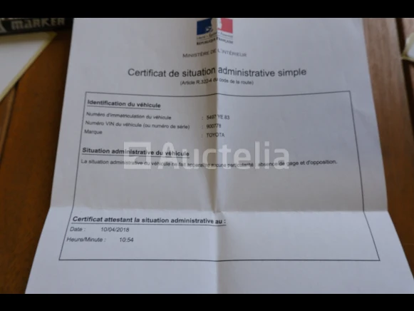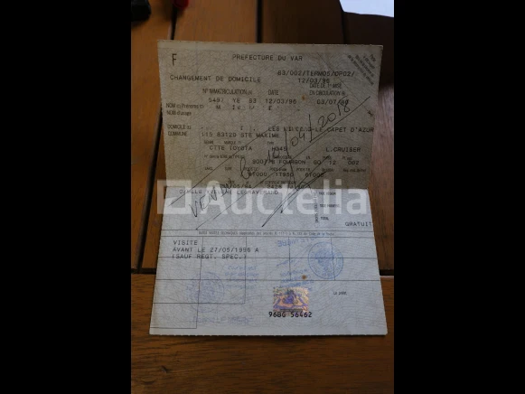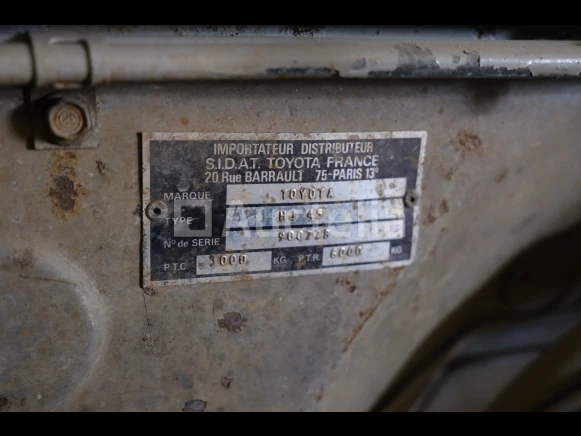 Utilitaire Merk: Toyota Model: HJ 45 Jaar: 1980 1e inschrijving: 03-07-80 Aantal kilometers: 520.093 Aantal toetsen: 0 Reservewiel Boorddocumenten: Zonder inschrijvingsbewijs Certificaat van overeenstemming Opmerkingen: Niet gestart tijdens inventarisatie De koper zal de administratieve procedures moeten uitvoeren die nodig zijn voor de registratie Serienummer: 900778 Onbekende brandstof Aanbevolen bezoek Geleverd met een certificaat van overdracht van een gebruikt voertuig Geleverd met eenvoudig administratief statuscertificaat