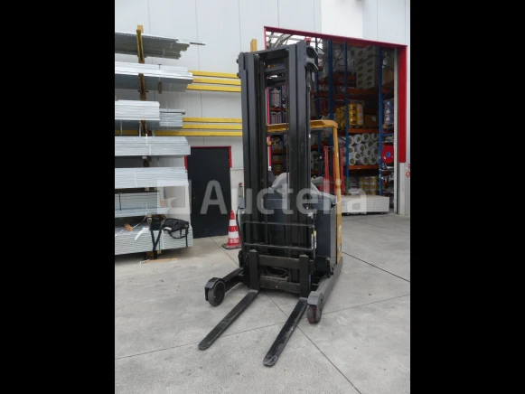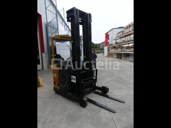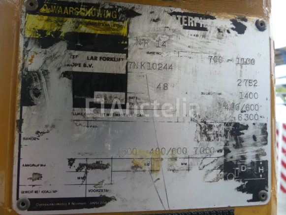 Vorkheftruck Merk: Caterpilar Model: NR14 Jaar: 2000 Uren: 5067 Lengte: 250 cm Breedte: 130 cm Hoogte: 290 cm Voortstuwing: Elektrisch Lengte vork: 115 cm Type mast: Duplex Hefhoogte: 700 cm Aantal wielen: 3 Status: Functioneel op Inventarisatiedag Opmerkingen: Geleverd zonder oplader
