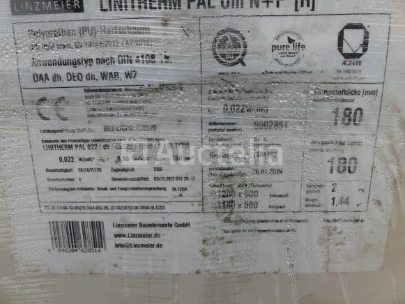 Isolatie paneel Merk: Linzmeier Model: Linitherm pal Uni N+F Lengte: 120 cm Breedte: 60 cm Hoogte: 18 cm Aantal :+/- 112