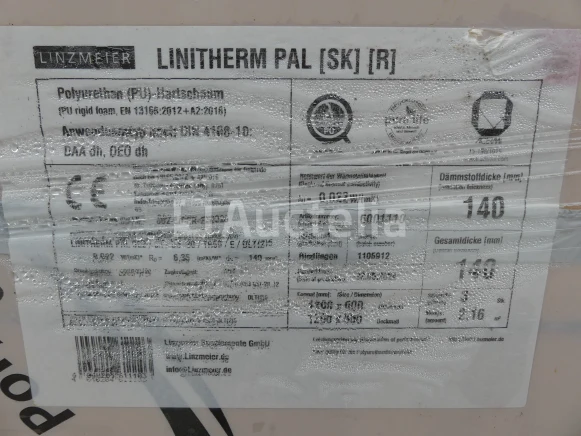 Isolatie paneel Merk: Linzmeier Model: Linitherm pal Lengte: 120 cm Breedte: 60 cm Hoogte: 14 cm Hoeveelheid: +/-102