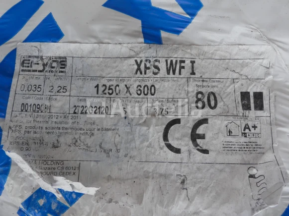 Isolatie paneel Merk: Soprema Model: Efyos XPS Lengte: 120 cm Breedte: 60 cm Hoogte: 8 cm Hoeveelheid: 130 +/-26 verpakkingen van 5 stuks