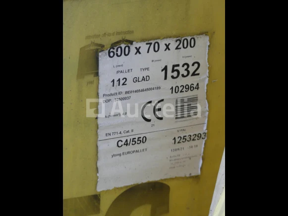 Ytong-blok Lengte: 60 cm Breedte: 7 cm Hoogte: 20 cm Hoeveelheid: +/-152 Kavel verdeeld over 2 pallets