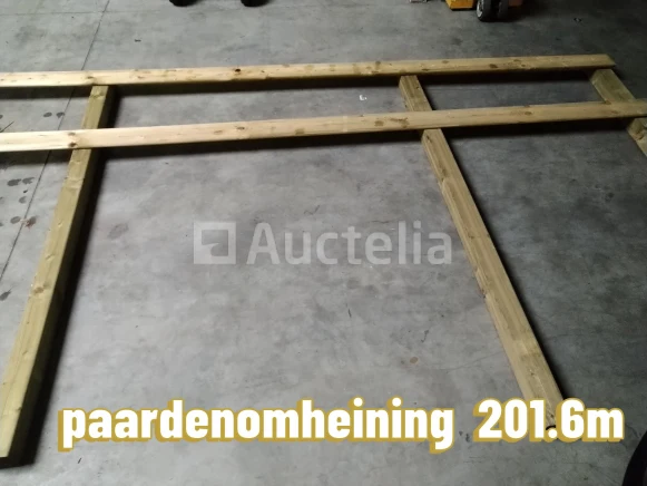1x Paarden weide omheining, 201,6 meter, onder druk geïmpregneerd grenen, 113 palen van 210cm., 112 planken van 360cm., 904 schroeven. Let op! Dit is een bouwpakket