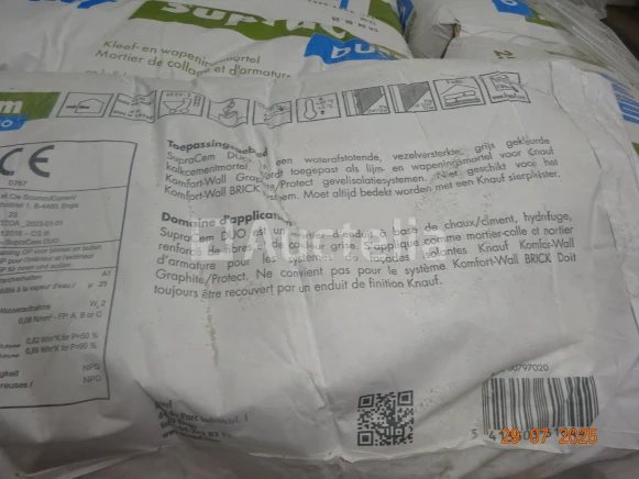 1 pallet van 38 zakken van 25 kg supra cem duo lijmmortel en wapening - knauf