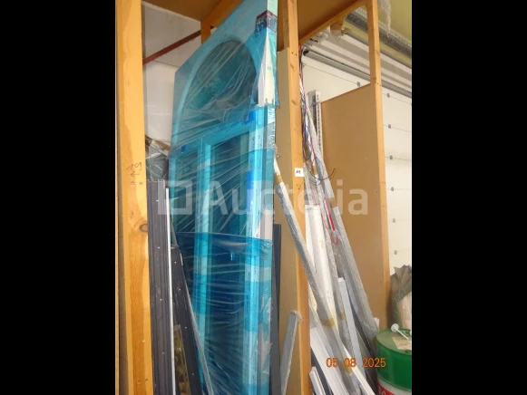 1 omlijsting van terrasdeuren, 3 grijze kaders, 1 set pvc-profielen, 1 set witte kaders, 1 groen blik met het merk gastrol