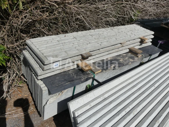 +/-13 palen en 38 betonplaten Compositie: +/-38 betonplaten van 200 cm x 38 cm +/-13 palen van 267 cm hoog
