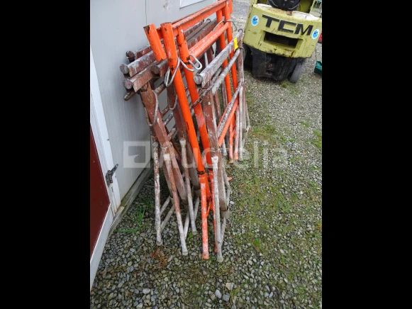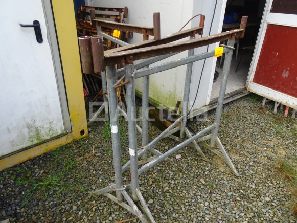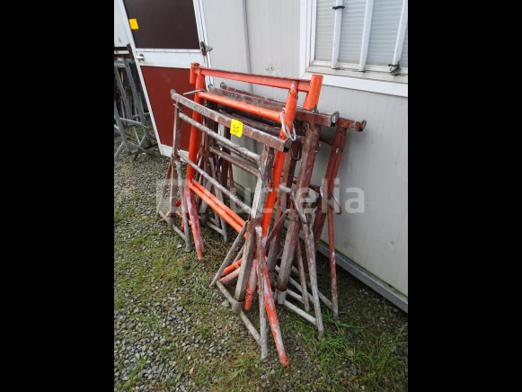 Een set van +- 16 metalen schragen in hoogte verstelbaar