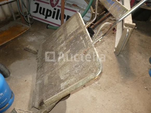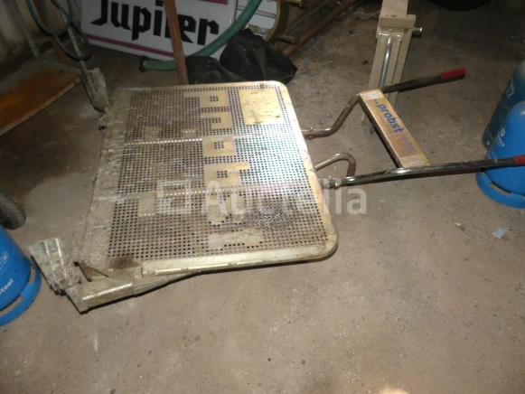 Werkwagen voor in elkaar grijpende straatstenen (klinkers) Merk: Probst Model: VTK Lengte: 170 cm Breedte: 120 cm Hoogte: 55 cm Staat: Niet getest Gemaakt van gegalvaniseerd staal
