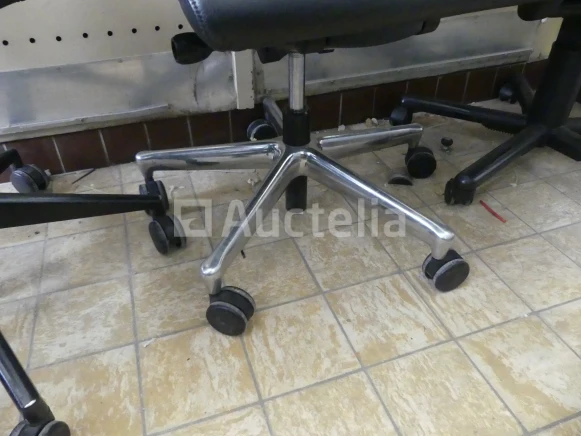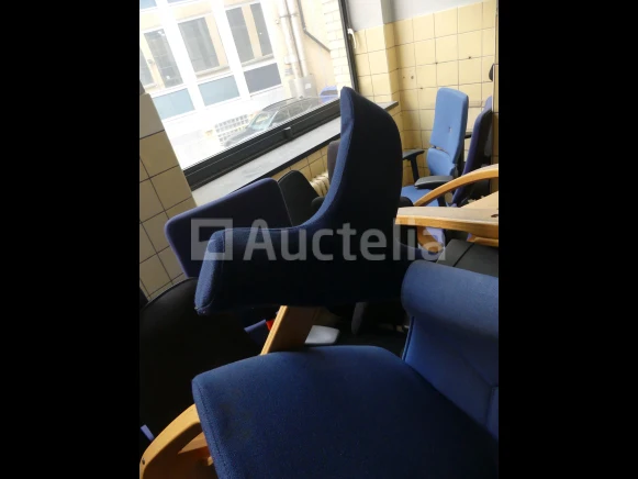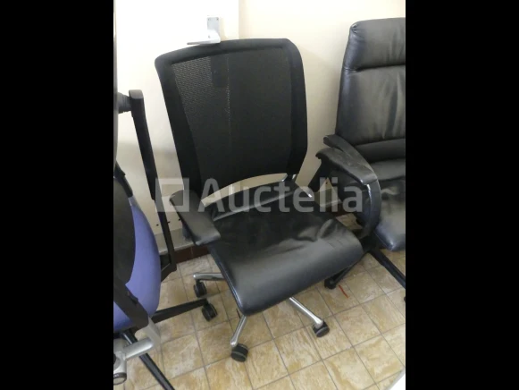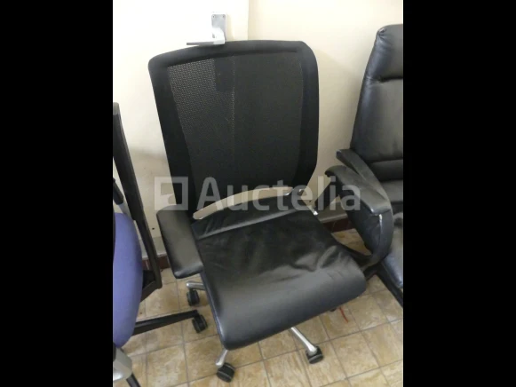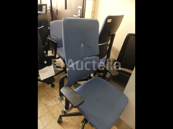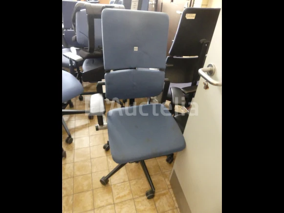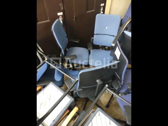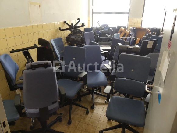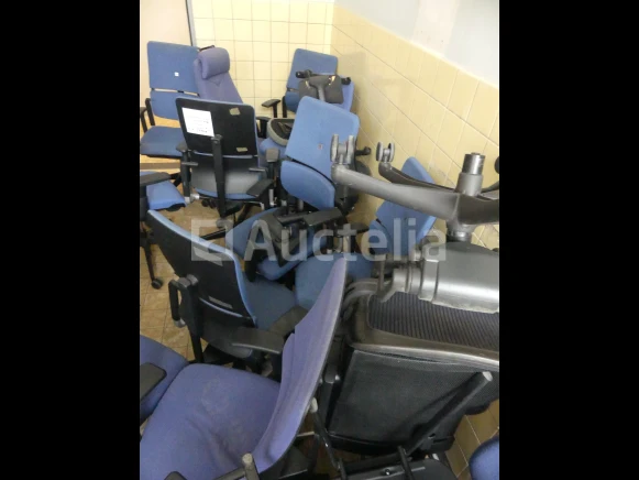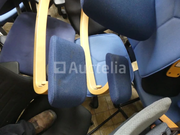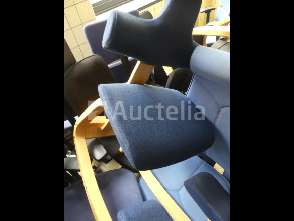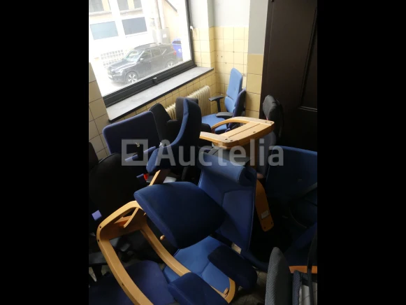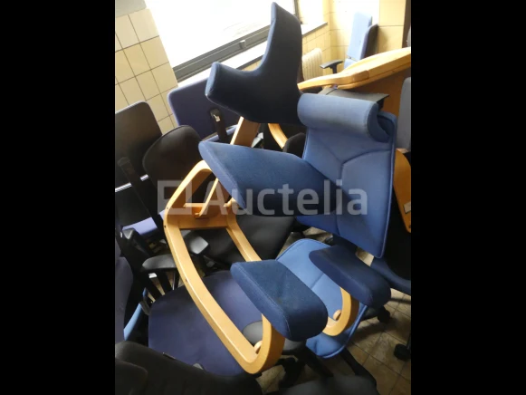 +- 56 bureaustoelen Compositie: +- 40 x ergonomische stoel op wielen met armleuning (stof, diverse kleuren) +- 2 x ergonomische stoel op wielen (stof, diverse kleuren) +- 2 x ergonomische stoel op wielen (leer met armleuningen) +- 5 x ergonomische stoel op wielen, zit-kniel +- 7 x stapelbare stoel met armleuningen