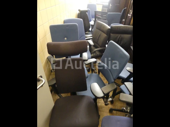 +- 35 bureaustoelen Compositie: +- 30 x ergonomische stoel op wielen met armleuning (stof, diverse kleuren) 1 x ergonomische stoel op wielen (stof, diverse kleuren) +- 4 x Ergonomische Stoel op Wielen (Leer met Armleuningen) 1 x ergonomische stoel op wielen, zit-kniel
