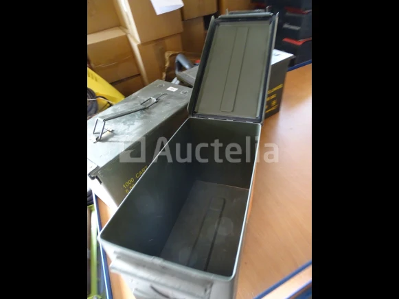 Metalen munitiekist Hoeveelheid: 3 stuks Afmeting van een doos: . Lengte: 28 cm . Breedte: 15 cm . Hoogte: 18 cm Verzending: Tarief B