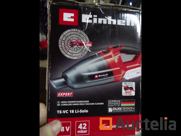 Draadloze handstofzuiger 18 V Merk: EINHELL Model: TE-VC 18 Li-Solo Spanning: 18 V lithium-ion Model geleverd zonder accu, zonder oplader Conditie: Nieuw Verzending: Tarief A