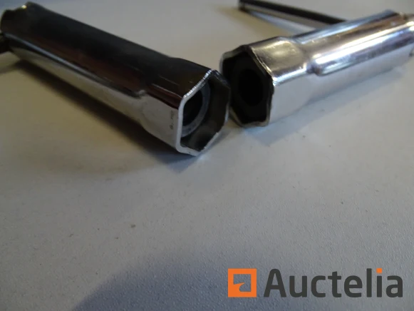 Bougiesleutel van verschillende lengtes Hoeveelheid: 2 stuks Lengtes: 9,5 en 11 cm (exclusief handvat) Conditie: Nieuw Verzending: Tarief A