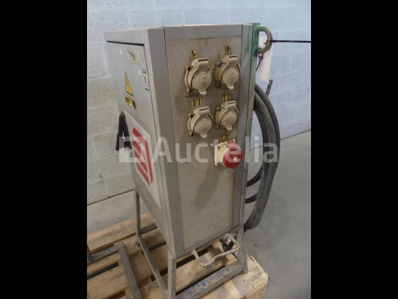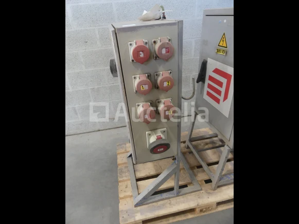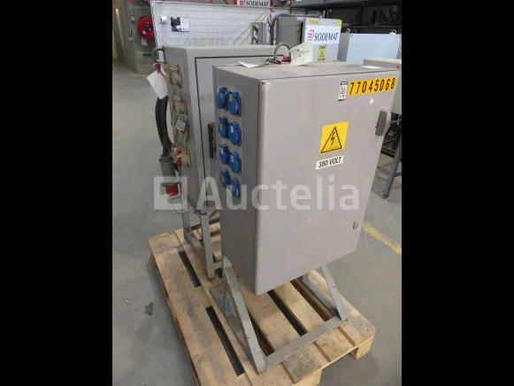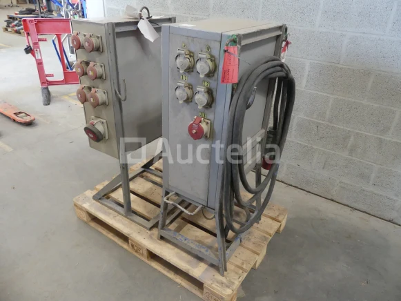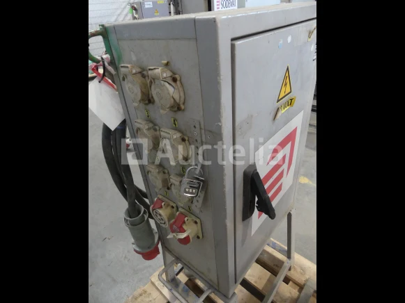 Bouwplaats elektrische kast Lengte: 50 cm Breedte: 45 cm Hoogte: 120 cm Aantal: 2 Staat: Niet getest Voeding 400V driefasig 63A Verschillende enkel- en driefasige uitgangen
