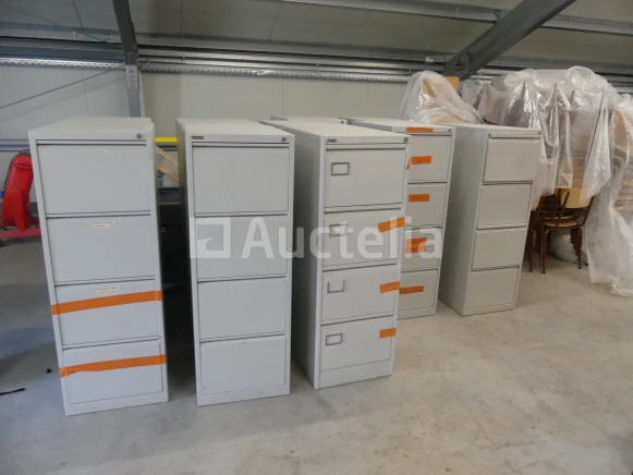 Verticale kast met 4 lades Lengte: 62 cm Breedte: 46 cm Hoogte: 134 cm Aantal: 10 Geen sleutel meegeleverd