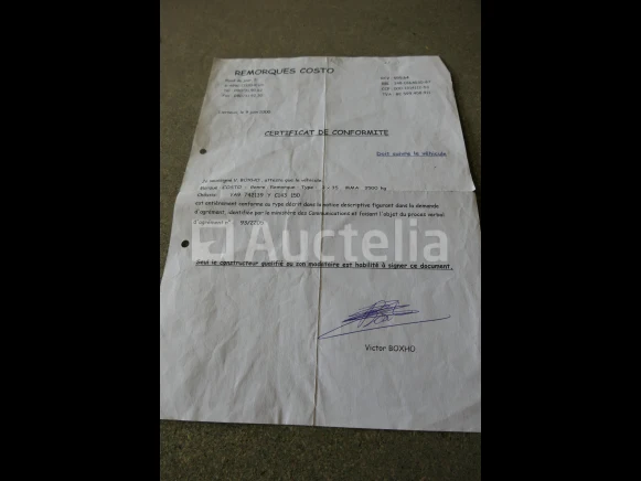 Laagassige drieassige dieplader Merk: Costo Model: 3 x 35 Jaar: 2002 Lengte: 720 cm Breedte: 245 cm Hoogte: 150 cm Gewicht: 1640 kg Datum 1e inschrijving: 09-08-02 Certificaat van overeenstemming: Ja Bewijs van inschrijving deel 1: Ja Bewijs van inschrijving deel 2: Ja Chassisnummer: YA9742139YC143150 Getest: Nee Afmetingen dienblad: 590 cm x 245 cm Hoogte bovenaan: 56 cm Lengte dissel: 130 cm Opmerkingen: Aanbevolen bezoek