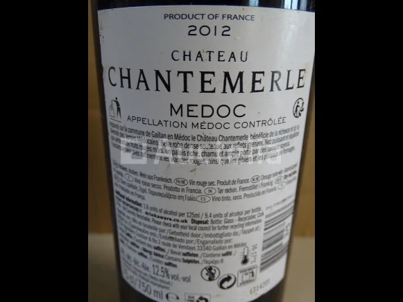 Médoc Cru Bourgeois Château Chantemerle Hoeveelheid: 3 stuks Jaar: 2012 Let op: houten kist niet inbegrepen Verzending mogelijk op aanvraag (maar geen claim mogelijk in geval van breuk)