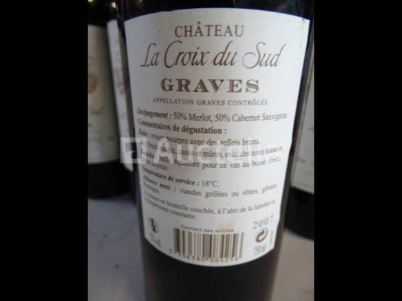 Bordeaux Graves Château La Croix Du Sud Aantal: 6 stuks Jaar: 2007 Verzending mogelijk op aanvraag (maar geen claim mogelijk in geval van breuk)