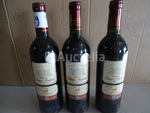 Cru Bourgeois 1er Côtes De Blaye Château Prieuré Malesan Hoeveelheid: 3 stuks Jaar: 1997 Let op: houten kist niet inbegrepen Verzending mogelijk op aanvraag (maar geen claim mogelijk in geval van breuk)