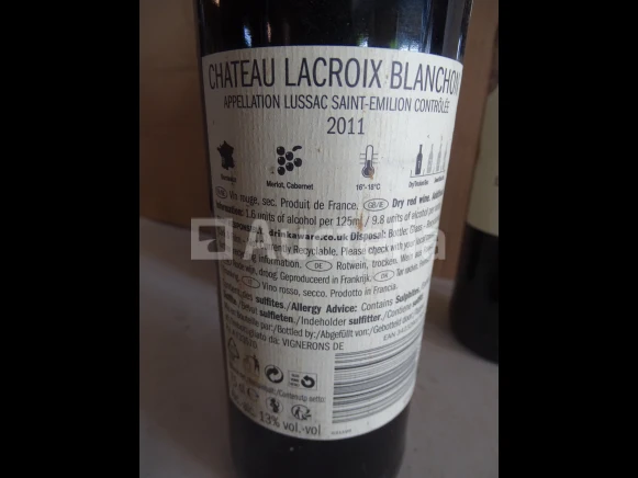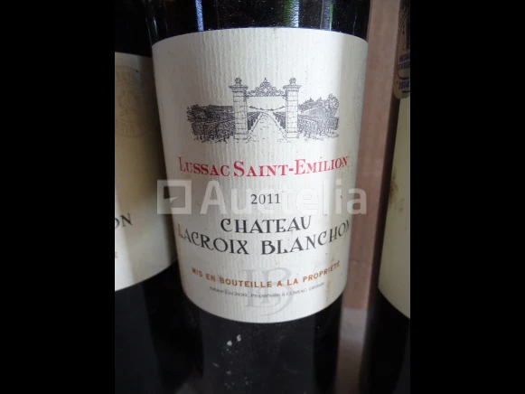 Lussac Saint-Emilion Château La Croix Blanchon Hoeveelheid: 3 stuks Jaar: 2011 Verzending mogelijk op aanvraag (maar geen claim mogelijk in geval van breuk)